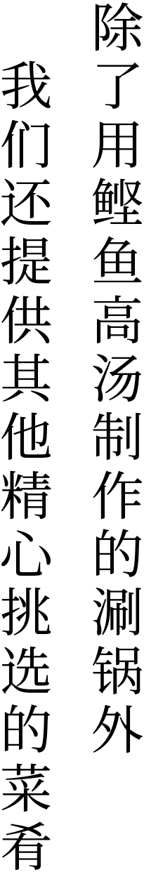 ※选择涮锅时,两位以上的顾客最少需点2人份以上。但若是一个人用餐,则涮锅可选1人份。